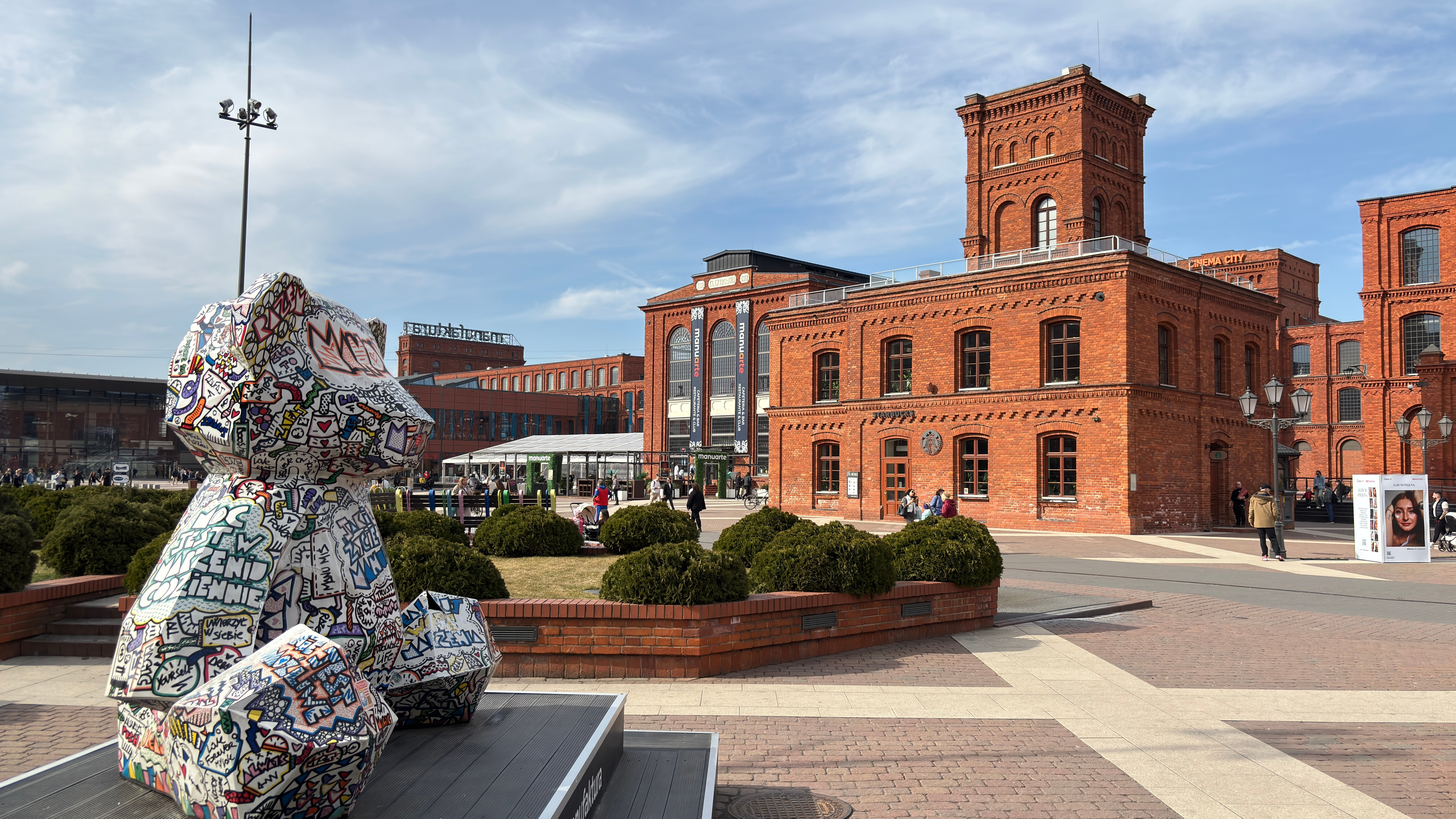 Przejazd do słynnej Manufaktury - centrum handlowo - rozrywkowego na terenie dawnego kompleksu fabrycznego Izraela Poznańskiego.