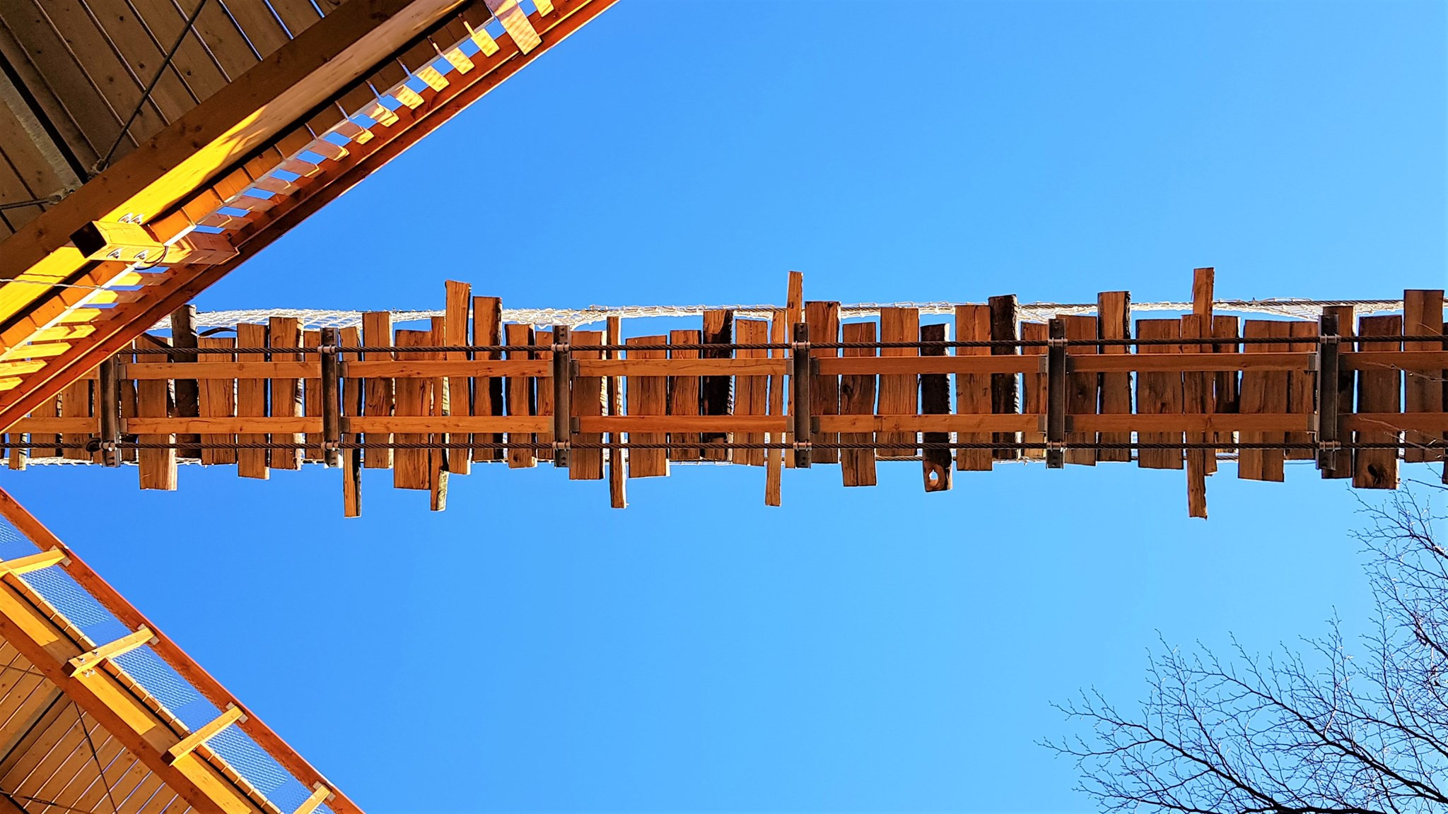 Dla odważnych przygotowano również wiszący most o długości 150 metrów, kołyszący się lekko na wietrze, który dodaje spacerowi dreszczyku emocji.